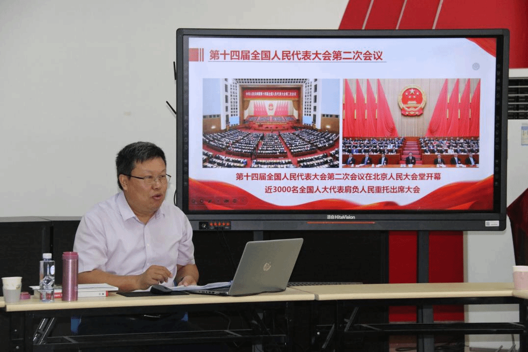 徐庆国部长以时政问题为切入点,从“深入贯彻两会精神、凝聚奋进前行力量”和“筑牢国家安全意识、共建和谐平安济大”为主要两个方面展开讲解,立足国情、社情、校情,结合思想政治教育专业特色,用生动的语言、鲜活的案例、深刻的道理,引导同学们深刻领悟“两个确立”的决定性意义,增强“四个意识”、坚定“四个自信”、做到“两个维护”,深入学习宣传贯彻全国两会精神和党的二十大精神,推动学习贯彻习近平新时代中国特色社会主义思想主题教育走深走实。讲课过程中,徐部长与同学们深入交流互动、课堂气氛热烈融洽。