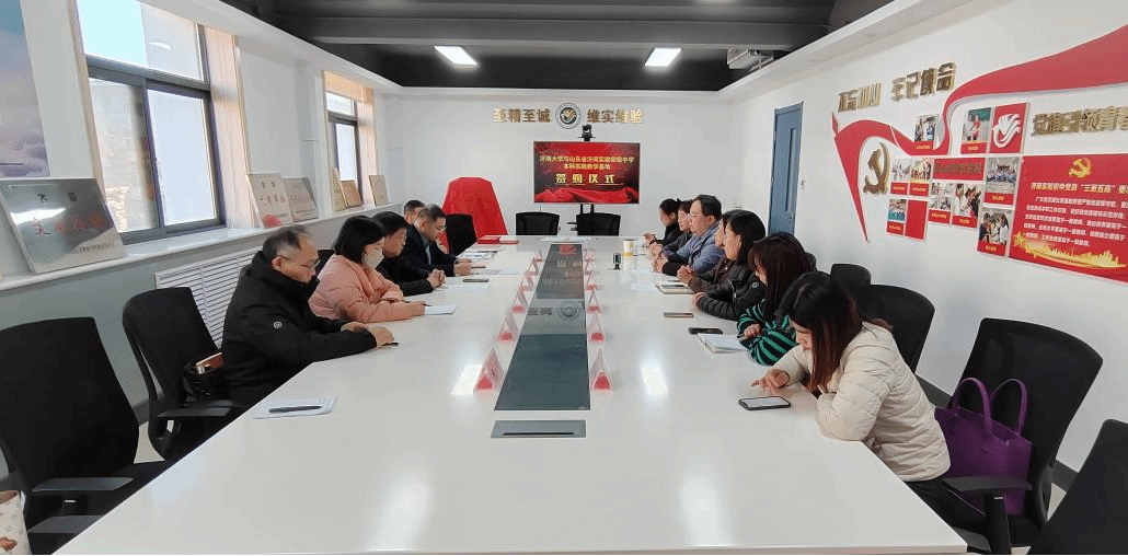 党委书记刘颖超、副院长杨立志、院长助理杨燕,教师代表代洪亮、苏宝俊、庞然一行前往山东省济南初级实验中学举行实习基地挂牌暨签约仪式。济南实验初中校长郑瑜、主任王昊和教师代表孙志瑜、崔新喜、郑鑫鑫参加签约仪式。