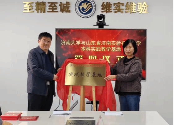 仪式上,杨立志与郑瑜代表双方签署了本科实践教学基地协议;刘颖超为基地揭牌并为山东省济南初级实验中学教师代表授予聘任证书。