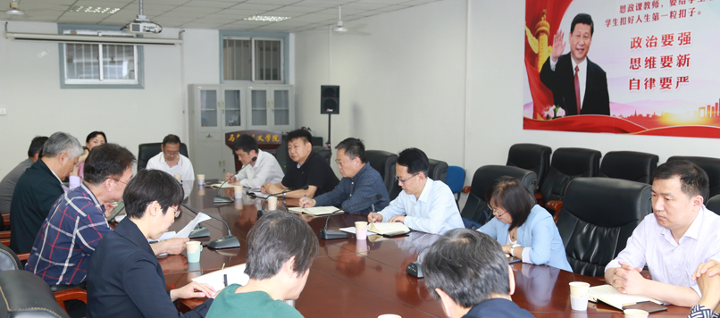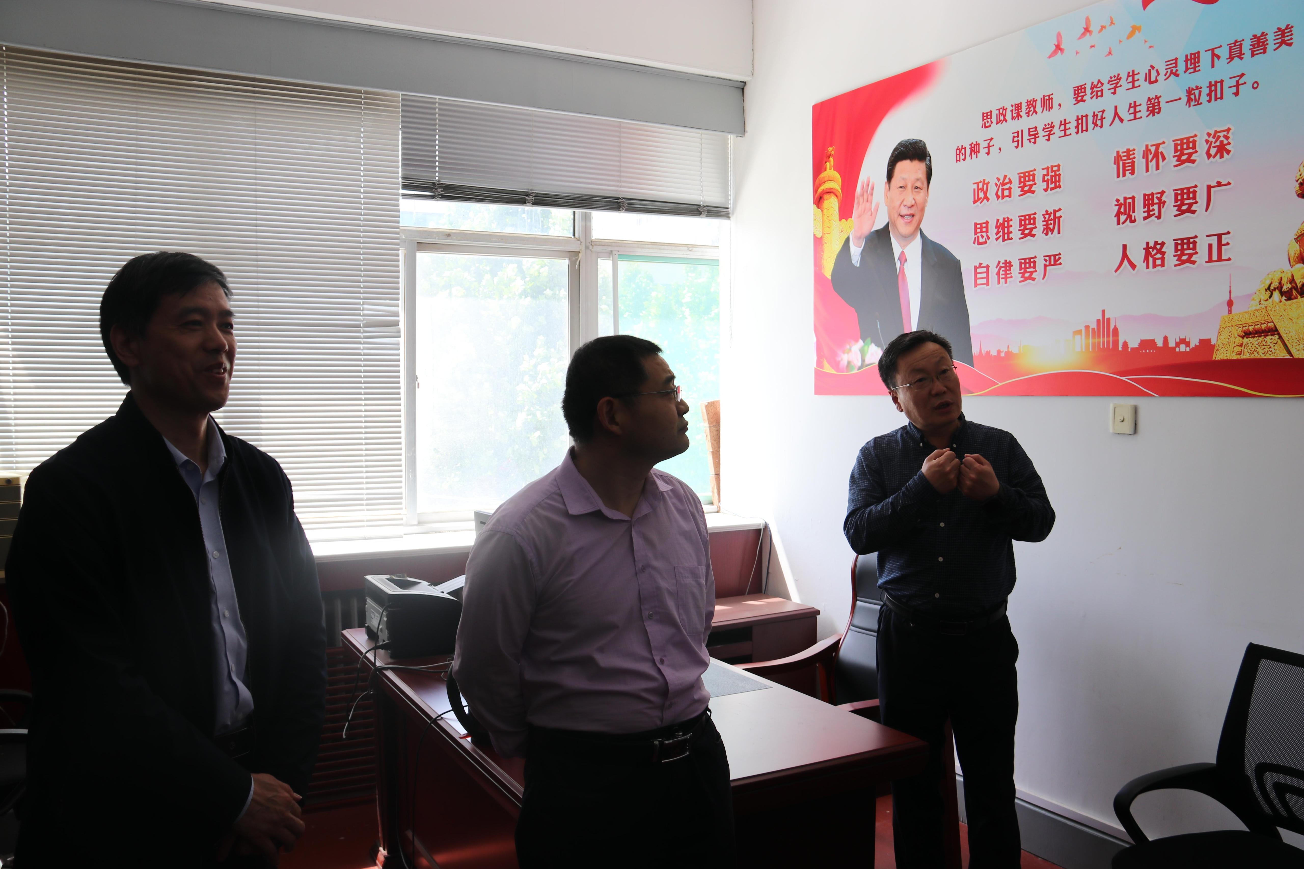 5月24日,为深化学校思政课改革创新,校长张士强来到黑料社 实地调研。张校长首先察看了省思政课教学名师“李朋忠工作室”和“杨立志工作室”建设情况。然后召开思政课建设座谈会。党委办公室、校长办公室、党委宣传部、马克思主义学部、党委教师工作部、教务处、黑料社 负责人以及各教研部主任等参加了活动。