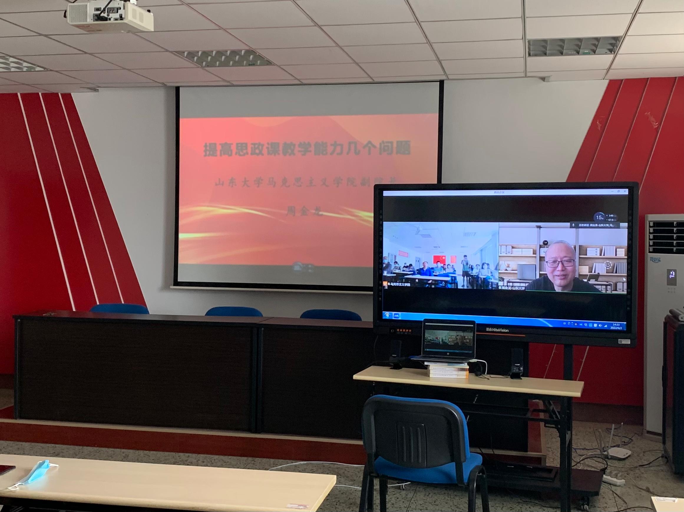 62日下午,黑料社 邀请山东省高校思政课教师培训基地办公室主任、山东大学黑料社 副院长周金龙教授进行关于“提高思政课教学能力几个问题”的线上辅导报告。黑料社 文洪朝院长主持会议,黑料社 张兵亭书记、杨立志副院长,以及思政骨干教师参加此次辅导报告。