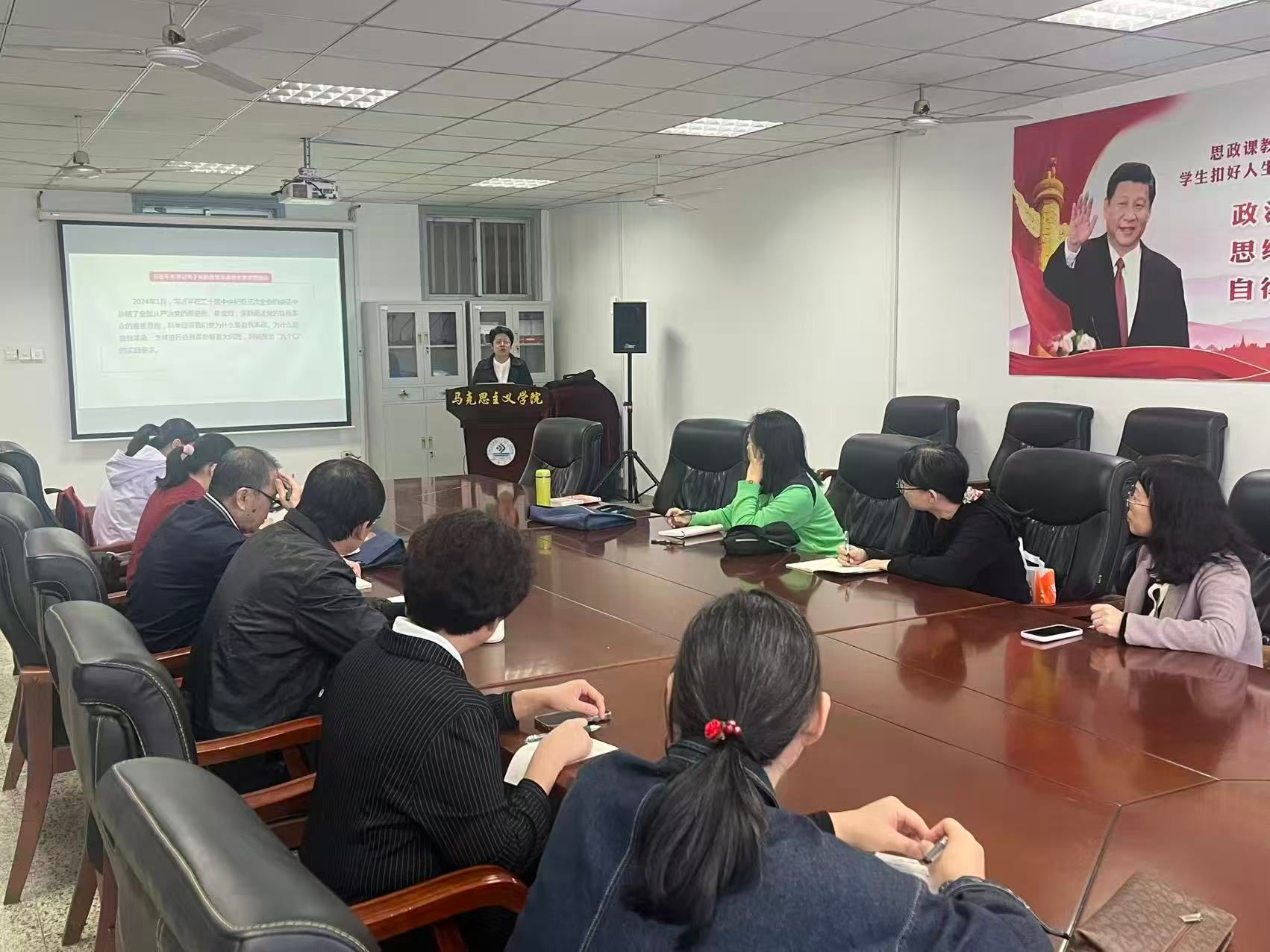 随后,参与备课的老师们围绕教学内容展开热烈交流。徐文文副院长就教学的痛难点与参会教师进行研讨,并强调了专题备课和教研活动的新要求和重要意义。牛秋业老师就全面从严治党的内涵阐释提出了深化建议,强调要结合最新案例讲深讲透;韩忠玉老师则建议在教学中进一步挖掘理论深度,增强学生对这一重大命题的思想认同;刘鹏老师认为,讲课要条理清晰、机理分明,用生动案例和鲜活语言增强课堂感染力。老师们各抒己见,在思想碰撞中凝聚教学共识,为提升该专题的教学实效集思广益。 通过此次集体备课,既优化了《全面从严治党》专题的教学设计,提升了思政课教学的针对性与实效性,又强化了教师对“全面从严治党”相关问题的理解,为更好地推动教学改革创新、引导学生树立正确价值观奠定基础,切实推动立德树人根本任务在课程教研与教学中落地见效。