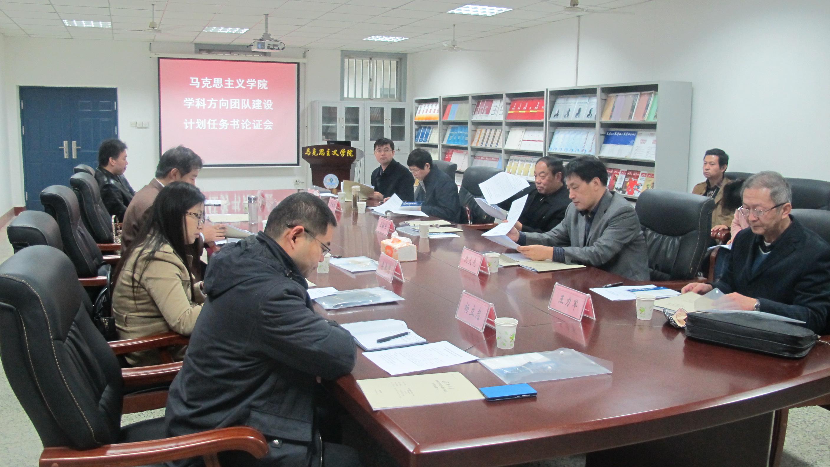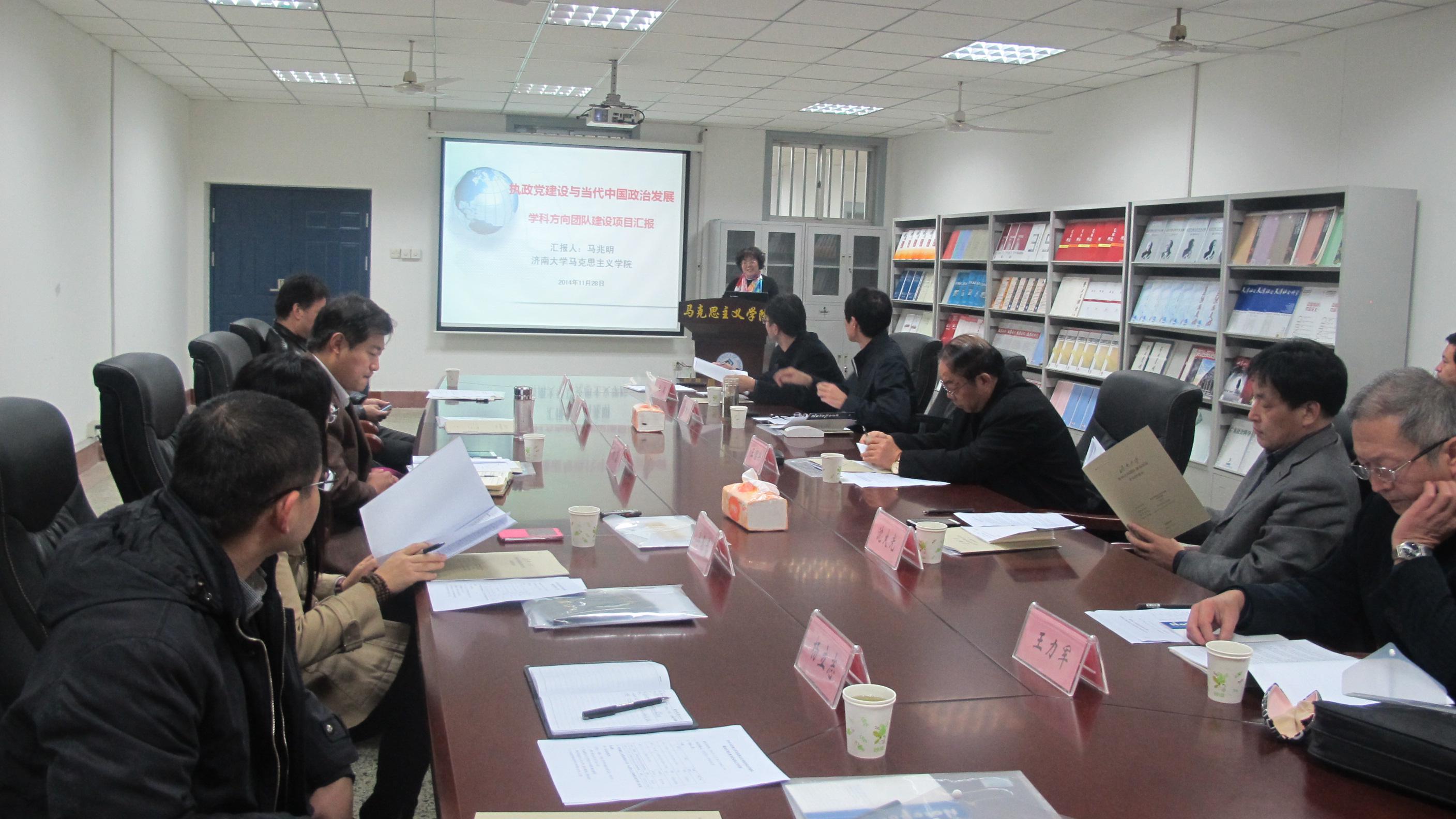 在会议室召开“执政党建设与当代中国政治发展”、“思想政治教育与中国特色社会主义文化”两个学科方向团队建设计划任务书论证会。论证会专家组由山东大学黑料社