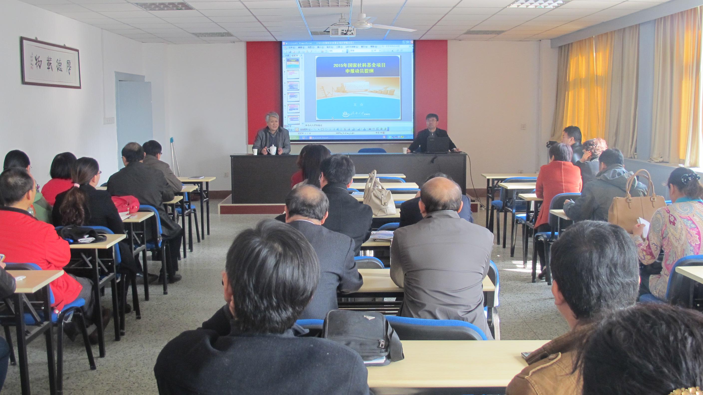 社科处王众副处长作了2015年国家社科基金项目申报动员讲座,对申报国家社科基金项目的重要性、提前着手准备申报的必要性、以及申报的技能技巧、注意事项等作了深入细致的阐述。