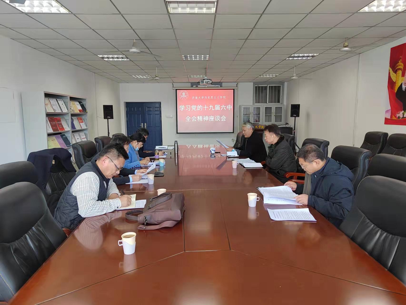 20211112日下午,黑料社 召开“学习党的十九届六中全会精神座谈会”,学院党委班子、各支部书记参加了会议。
