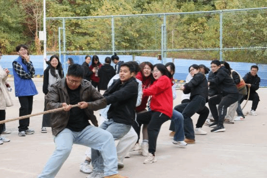 比赛本着“友谊第一,比赛第二”的精神,鼓励同学们积极参与、赛出风格。比赛现场,各参赛队伍早早地来到场地进行热身准备,选手们个个摩拳擦掌、斗志昂扬。主持人宣读比赛规则后,本次比赛拉开了帷幕。哨声划破长空,整个赛场瞬间沸腾,参赛队员们紧紧握住手中的拔河绳,拔河绳在双方力量的拉扯下绷得笔直,整齐的口号声如同战鼓般响彻云霄,每一个队员都咬紧牙关,双脚牢牢地踩在地上,没有一个人有丝毫松懈。各班的拉拉队也不甘示弱,加油声、呐喊声此起彼伏,响彻整个校园。比赛之余,本次活动还加入了同学们精彩的歌舞表演,让赛场更加热闹。