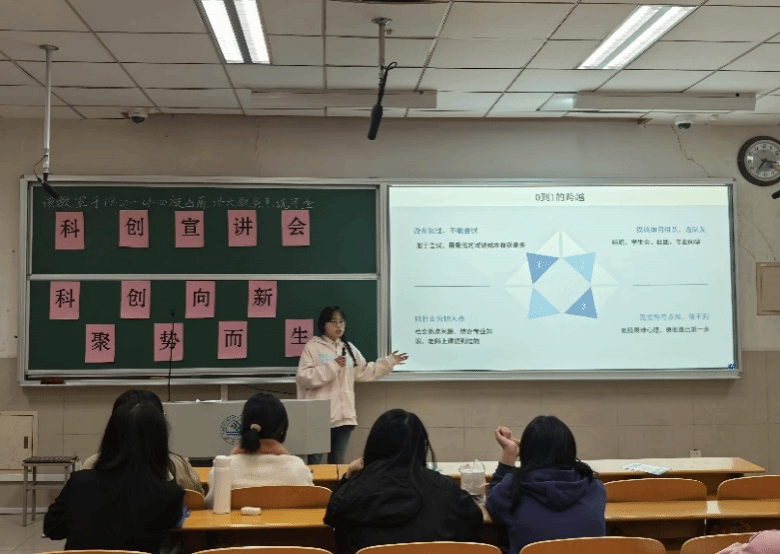 学生会于3月13日在第十教学楼举办第二届"科创向新,聚势而生"科创宣讲会。本次宣讲会由相茂雅、于晴、蔡甜圆三位同学担任主讲人,分享科创赛事心得。