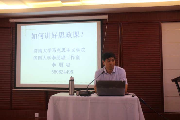 李朋忠老师应邀在中国海洋大学培训中心为来自重庆交通大学、四川外国语学院、重庆理工大学、三峡学院的60余位思政课教师做了《如何讲好思政课》的专题讲座和教学示范课。李朋忠老师通过自身经历、亲身体会阐述了“学生眼中的思政课好老师是什么样的?”、“要做一个好的思政课老师应该做到什么?”等问题,指出要做一个好的思政课教师必须做到:态度认真、知识扎实、备课踏实、特点鲜明、实事求是。参与听课的思政课教师普遍反应触动很大、启发很大。