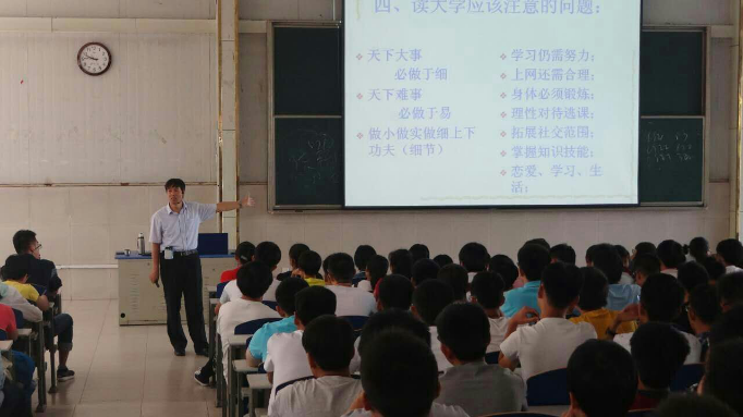 2015年9月7号下午应外国语学院的邀请,李朋忠老师在二教101教室为外国语学院300余名2015级新生做了《我们为什么要读大学》的专题讲座。李朋忠老师从社会对大学生的期望入手,主要围绕大学是什么、大学应该收获什么、读大学应该注意的问题等展开。主要向同学们讲述了读大学应该树立自主学习、全面学习、创新学习、终身学习的理念,应该养成勤奋、严谨、求实、创新的良好学风,正确处理好学习、锻炼、社交、网络等问题,让自己真正实现全面健康的发展。同时,李朋忠老师也告诫青年学子们一定要把自己的使命和国家、民族的前途相结合,把自己锻造成国家民族需要的人,这样个人才会有更大的发展空间。同学们表示大学四年一定好好度过、立志成才,为伟大的中国梦贡献自己的力量!