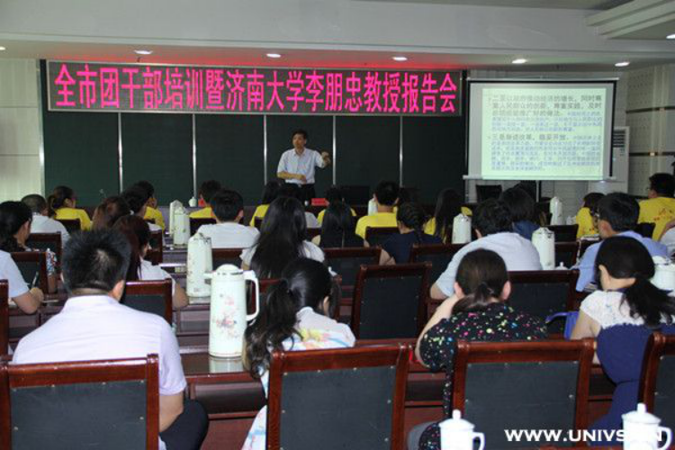 “青年马克思主义者培养工程”指导老师李朋忠为青州市全体团干部做题为《深入开展“四进四信”活动,做中国特色社会主义合格建设者接班人》的报告。青州市全体团干部及社会实践团全体成员参加并聆听了此次报告会。报告会由青州市团委副书记闵栋主持。
